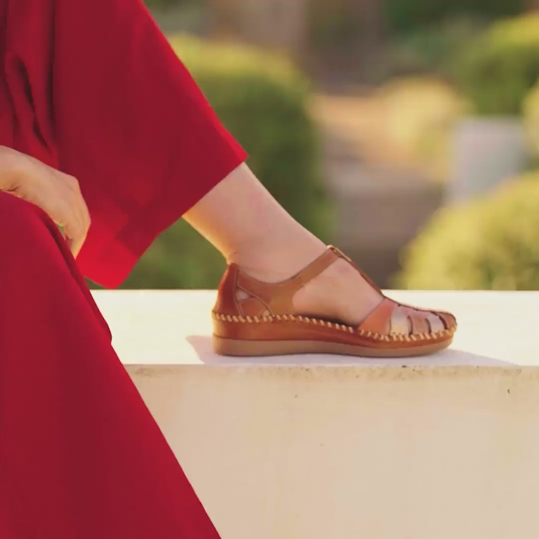 Experience the perfect combination of style and comfort with these Pikolinos Cadaques sandals. Featuring a closed heel and woven toe with front closure, they ensure a secure fit. Ideal for leisurely summer walks, they offer the best of both worlds - the look of sandals and the comfort of sneakers.